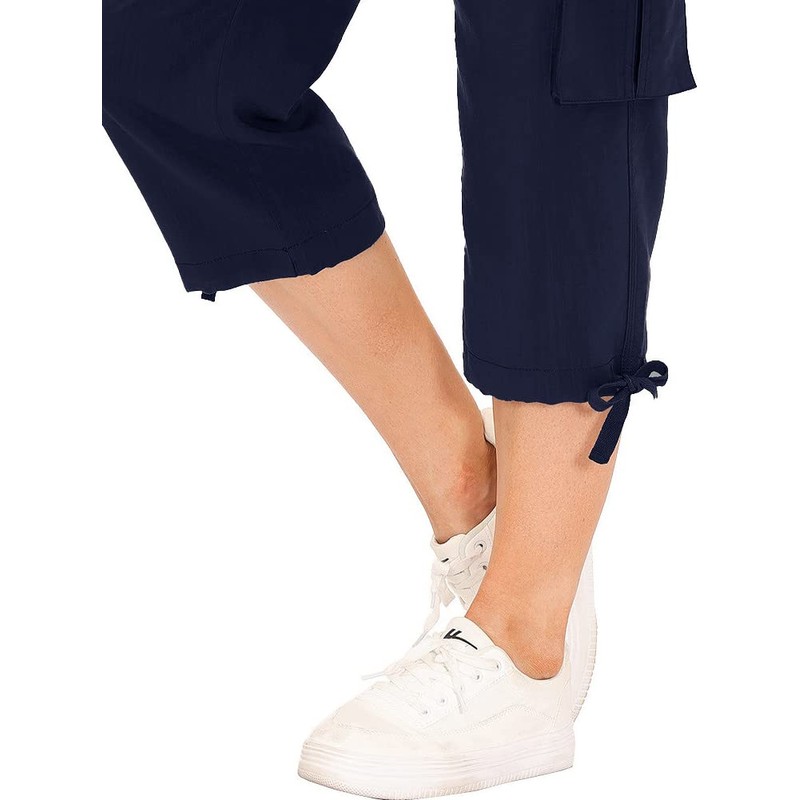 Hiking Cargo Shorts for Women Dry Fit Active Capri Pants for Camping with Pockets Navy