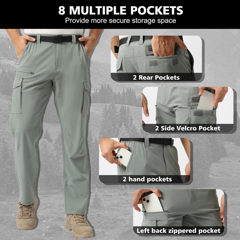 - 【Advanced material】: These outdoor hiking pants men are water-resistant and stretchy, suitable for many users. These mens travel pants won't rub or make noise when you walk, ensuring you won't feel embarrassed.