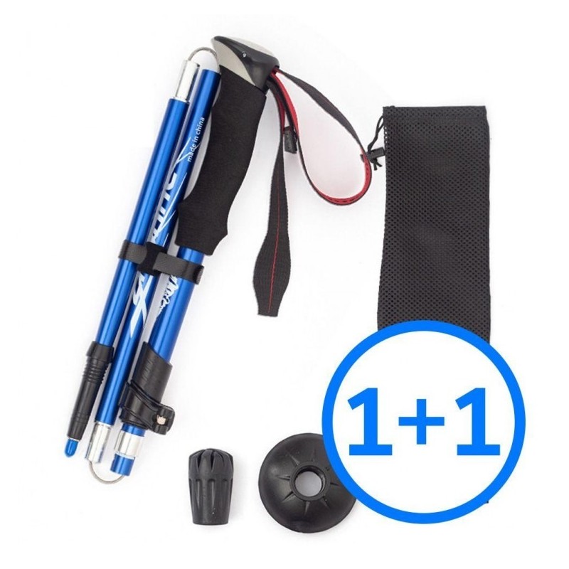 Hiking stick, sturdy hiking equipment, ultra-light, short, long, foldable 1+1 Long/Blue 1+1