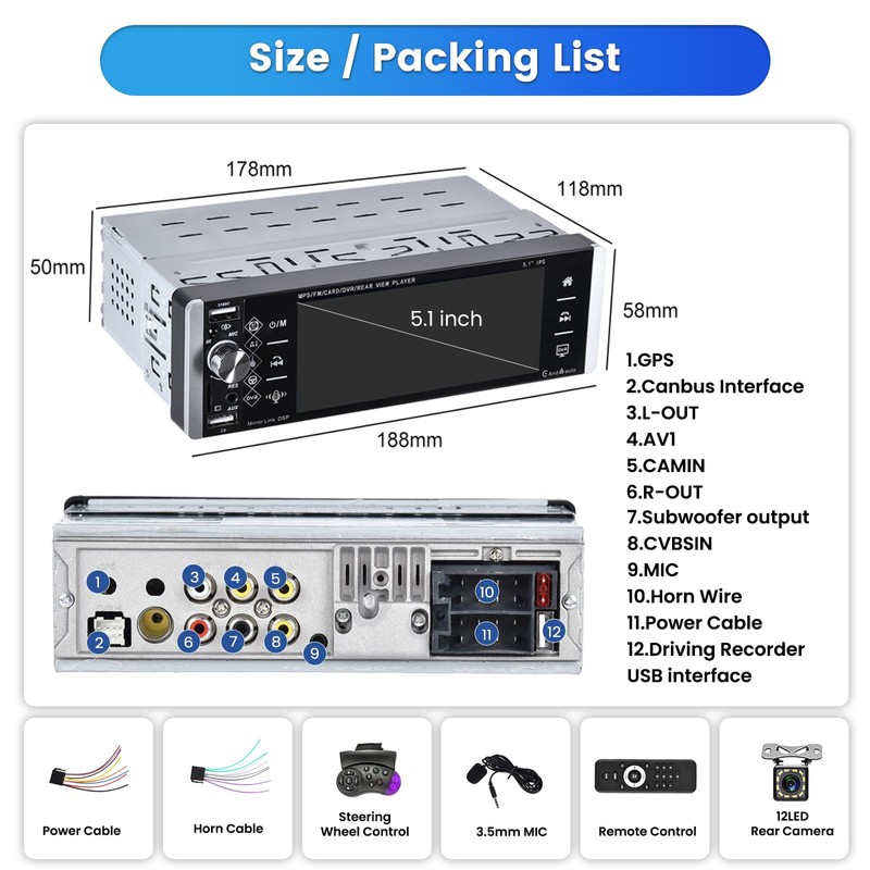 - 【Autoradio mit Rückfahrkamera】 Ein-Din-Autoradio wird mit einer Rückfahrkamera für sicheres und bequemes Parken geliefert. Wenn Sie den Rückwärtsgang einlegen, wird das Rückfahrvideo automatisch auf dem Bildschirm des Autoradios angezeigt.
