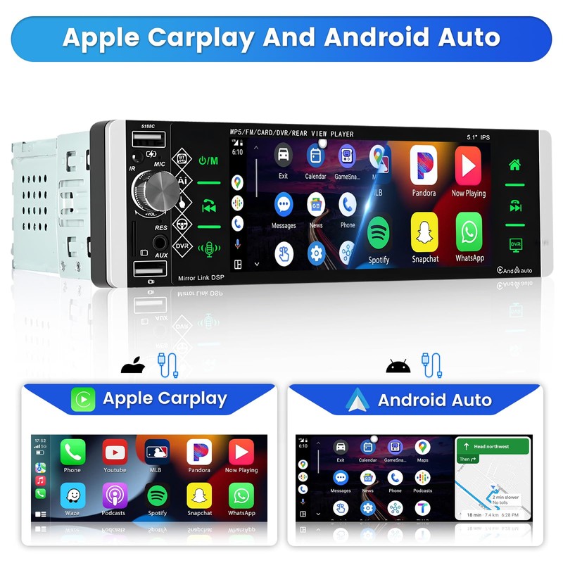 - 【Carplay & Android Auto】 Verbinden Sie einfach Ihr Smartphone über das USB-Datenkabel mit dem Autoradio, damit Sie auf die Telefonkartennavigation, Kontakte, E-Mail und Benachrichtigungen zugreifen können. Sie können den Siri-Sprachassistenten aufwecken, um Ihnen zu helfen, damit Sie sich auf die Straße konzentrieren können.