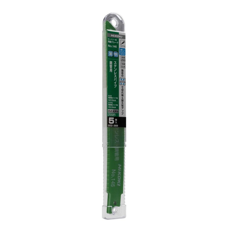 HiKOKI 0032-2606 Curved Saver Saw Blade, Reciprocating Saw Blade, No. 146, Total Length 7.9 inches (200 mm), 18 Mounts/Inch, 5 Pieces, Less Than 0.08 inch (2 mm) Stainless Steel Pipe Material