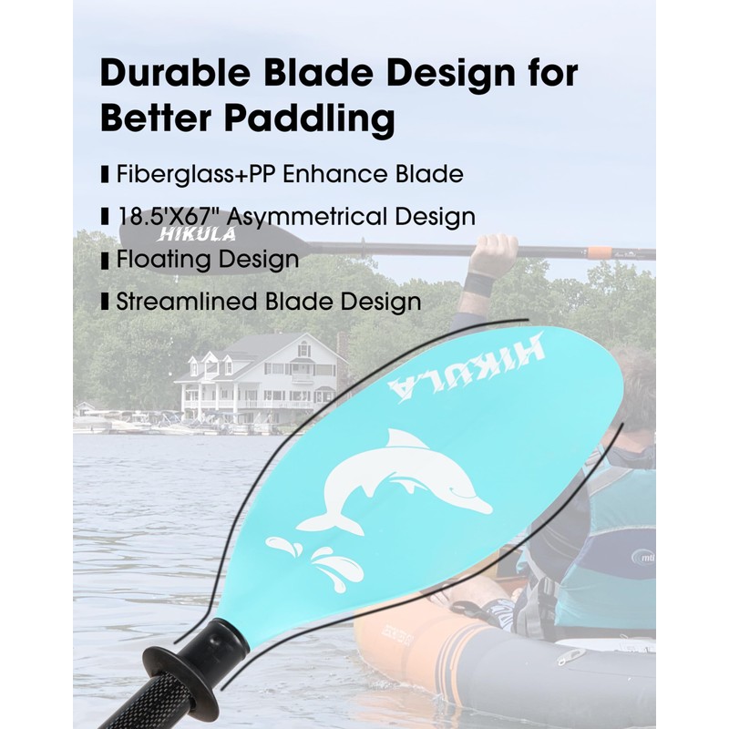 - FIBERGLASS +PP ENHANCED BLADE --- Our paddle blades have good durability and corrosion resistance, float in saltwater and freshwater. The streamlined design adds power and stability to the kayaking while reducing flutter of the paddle