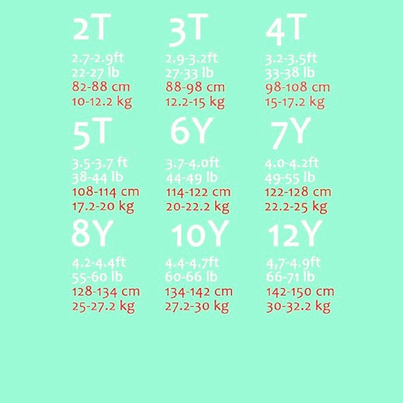 Size:2T,Recommend Weight/Height :22-27lbs,2.7-2.9ft