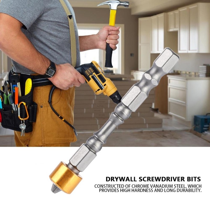 - This plasterboard screwdriver bits adopts depth stop design can effective limit screw penetration depth into drywall and avoid damage to board.