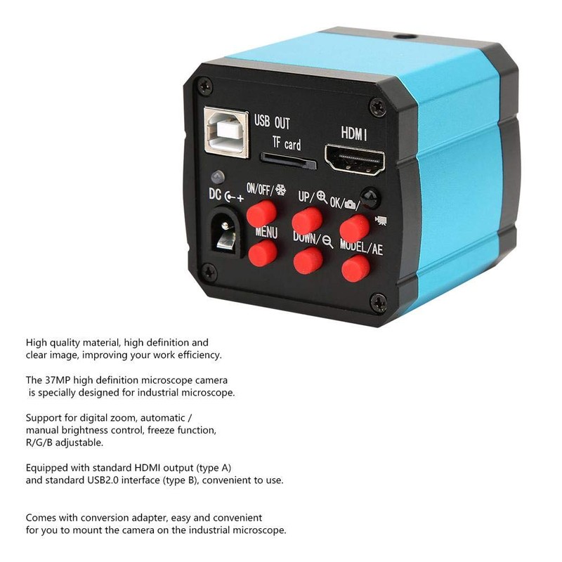 Hilitand Cámara de microscopio Industrial, microscopio electrónico Industrial USB de 37MP con Adaptador de conversión para microscopía Industrial(US Plug)