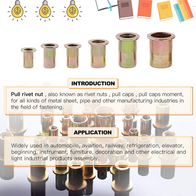 - 🔻【WIDE APPLICATION】Pull rivet nut , also known as rivet nuts , pull caps , pull caps moment, for all kinds of metal sheet, pipe and other manufacturing industries in the field of fastening. Widely used in construction, automobile, and other household appliances and furniture products