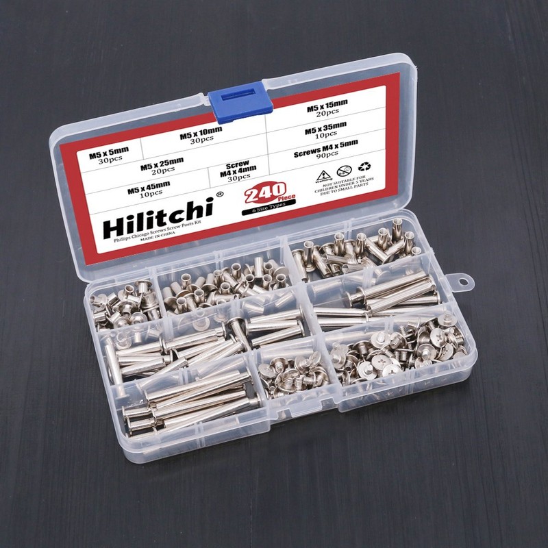 Hilitchi 120-Sets (240 Pcs) Chicago Binding Screws Assortment Kit
