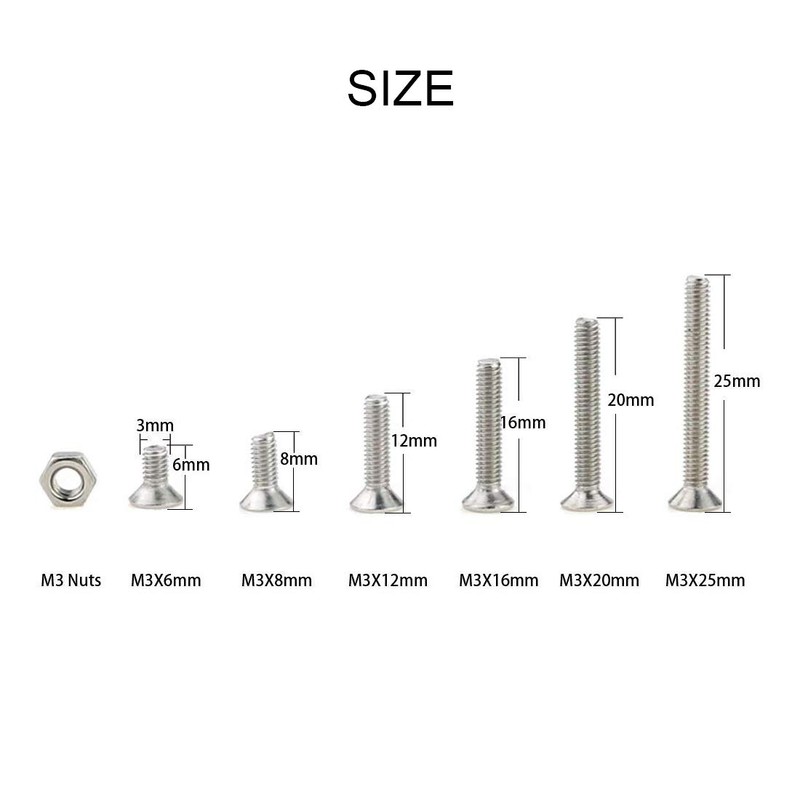 Hilitchi 260-Piece Metric M3 Hex Socket Flat Head Countersunk Bolts Screw Nut Assortment Kit - 304 Stainless Steel