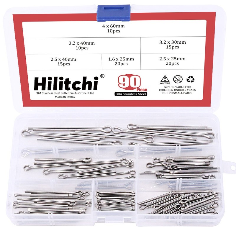 Hilitchi 90-Pcs Cotter Pin Assortment Kit - 304 Stainless Steel