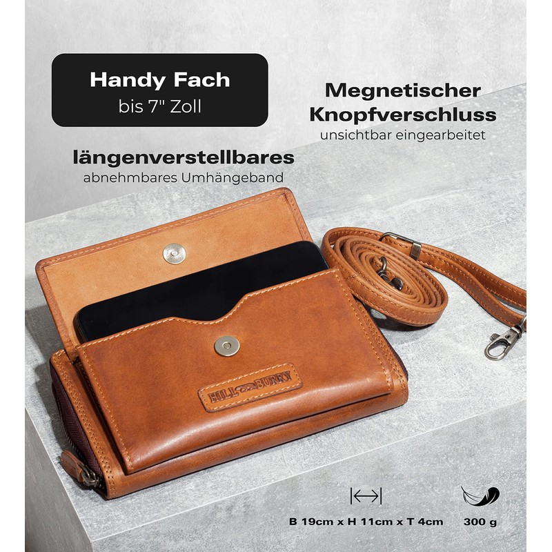 - Removable and adjustable strap made from the same high-quality leather as the wallet.