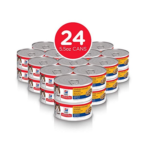 Hill's Science Diet Wet Cat Food, Adult 7+ for Senior Cats, Chuncks & Gravy Tender Chicken Recipe, 5oz Cans, 24 Pack