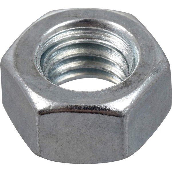 Hex nuts are to be used with machine bolts to adhere facing materials to prevent tension and shear movement. Specifically in wood to wood, wood to metal, or metal to metal applications. Zinc grade 2 steel hex nuts are recommended for most general uses and are corrosion resistant. Be sure to pre- drill any holes and to use washers and bolts that are a similar grade and finish.