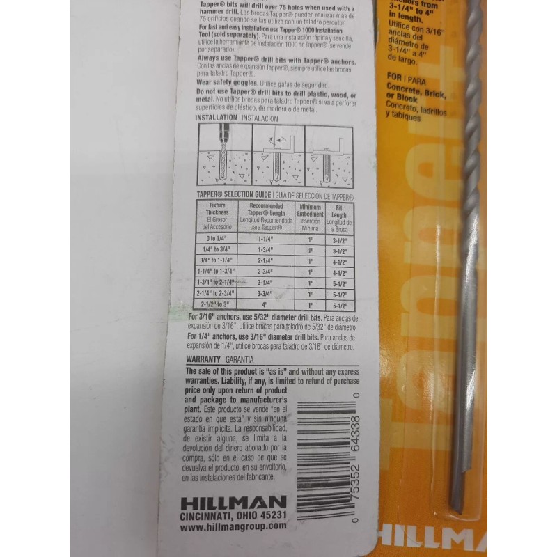 Hillman 2X Hillman 375222 Carbide Tipped Straight Shank Drill Bit 5/32 x 5-1/2 L in