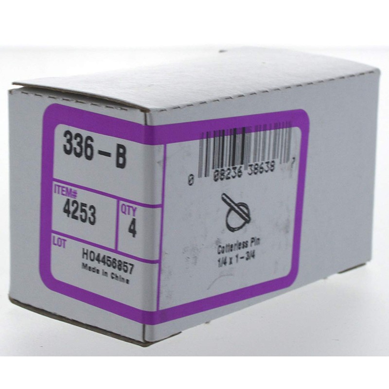 Hillman 4253 (1/4" Ring Diameter x 1-3/4" Length) Cotterless Hitch Pins, Silver, 4 Pieces
