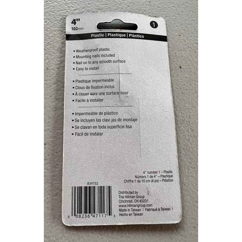 Hillman 839752 Black Plastic Nail-On Weatherproof 1-Number 4 In 102 mm
