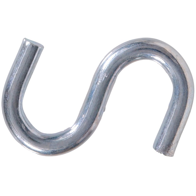 Hardware Essentials S-hooks are great for reorganizing. Use them in the workshop, home, or garden. S-hooks have a larger opening than 8-hooks. Use on broader rods for hanging. Zinc finish helps prevent rust. 0.092" x 3/4" Hook Size.