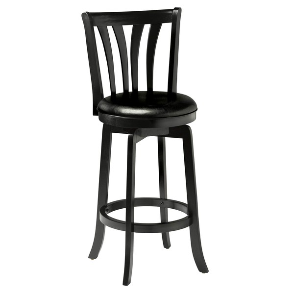 The Hillsdale Savana Swivel Counter Stool has a sturdy base with flared legs. The back has an arched spindle design and the seat is covered in easy to care for black vinyl. Finished in a simple black finish and constructed of hardwood, the Savana stool is a fantastic addition to any kitchen or home bar area. Assembly required.