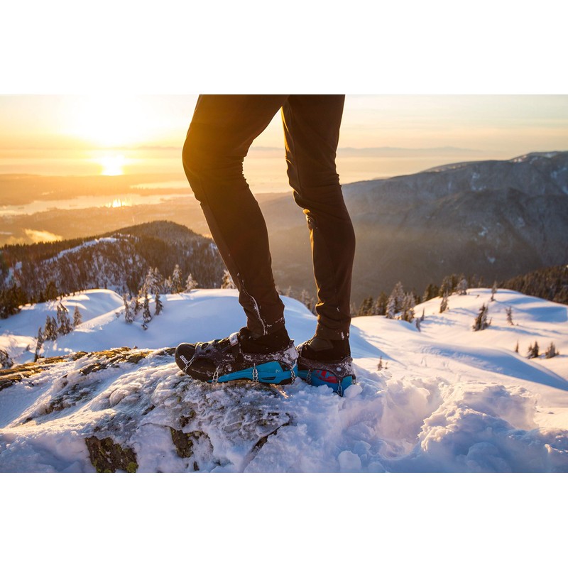 - TRACTION & COMFORT: 18 carbon steel 13mm and 15mm spikes combined with a hinged front plate system allow for unrivaled flexibility and secure strides on steep uphill and downhill trails covered in snow and ice.
