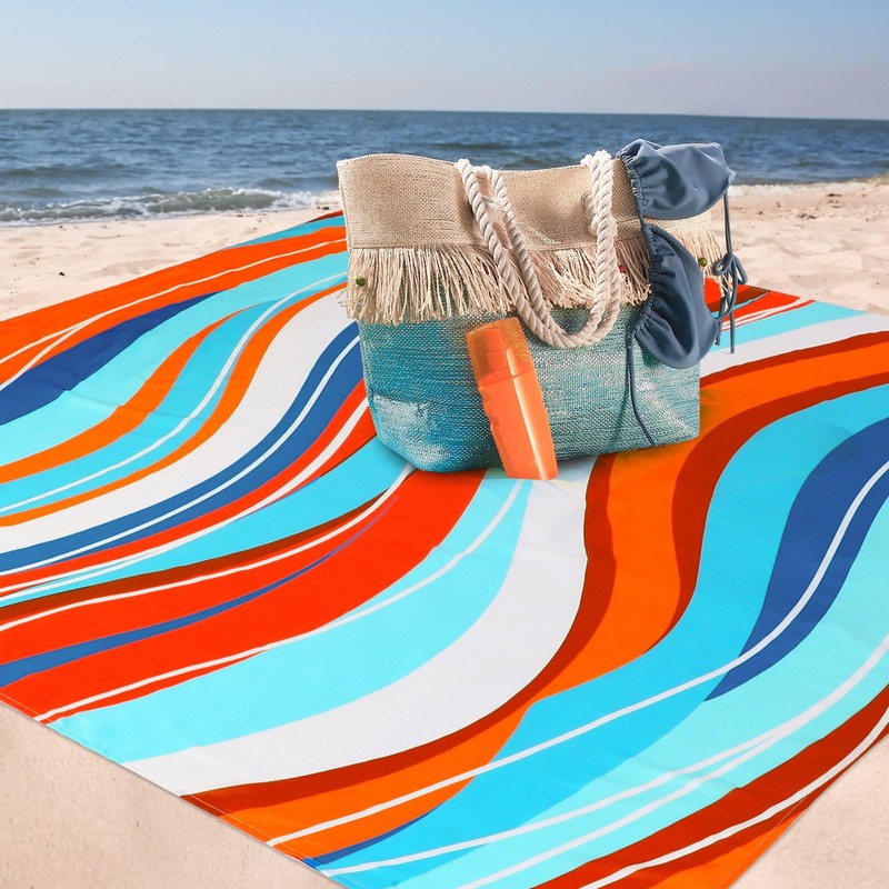- Fashionable Design: our beach blanket sandproof features a blue and orange ripple design, which is eye-catching, stylish and beautiful, you can easily find your family and friends on the beach without worrying about getting lost