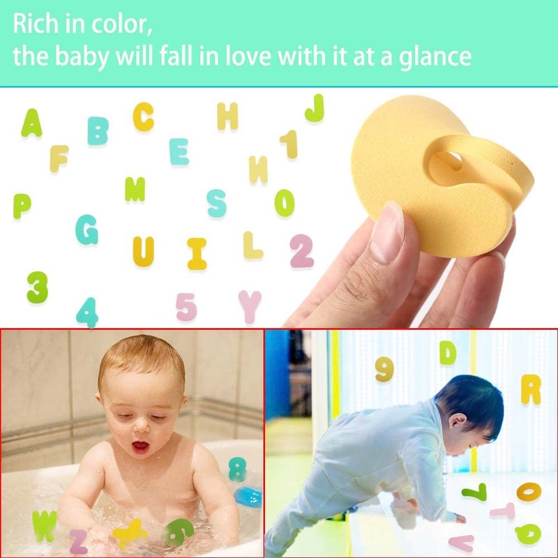 - Bath toy: bath letters and numbers can be floating or submerged on the water surface and attached to smooth surfaces (e.g. mirrors, tiled walls, etc.) to make bath time enjoyable and your baby's creativity in terms of words and maths.