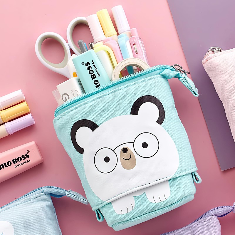 - 3. Cartoon pencil case: This stand up pencil case has cute and beautiful patterns, can hold several pencils, pens, crayons, watercolour pencils, brushes, etc. and adds colour to your desk/desk/desk.