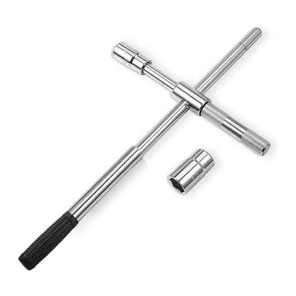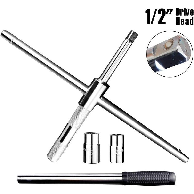 - Telescopic & Detachable Design: Extend the wrench from 17" to 23" for maximum leverage on tight bolts, then detach sockets for compact storage. Saves 70%+ space in your trunk vs. fixed wrenches.