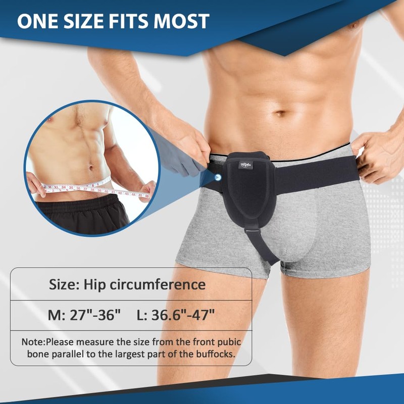 - Works for Left or Right Side Inguinal Groin - Our inguinal hernia belt for women and men offers full adjustability. Simply adjust the elastic behind the butt for left or right make the adjustment and enjoy interchangeable protection whether your hernia affects you on the left or right side.
