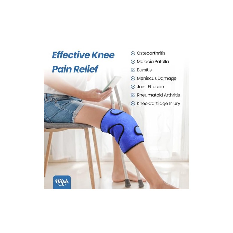 - Ice & Compression Therapy Knee Ice Pack - Hilph gel cold pack for knee attached with 3 adjustable straps for securing around the knee and freeing your hands, and ensuring non-slip when you walk around. The straps of knee ice wrap can be freely attached to the breathable neoprene outer for adding different compression. Cold compress knee wrap can be used sitting, standing, or lying down, suitable for home or work, outdoor to use.
