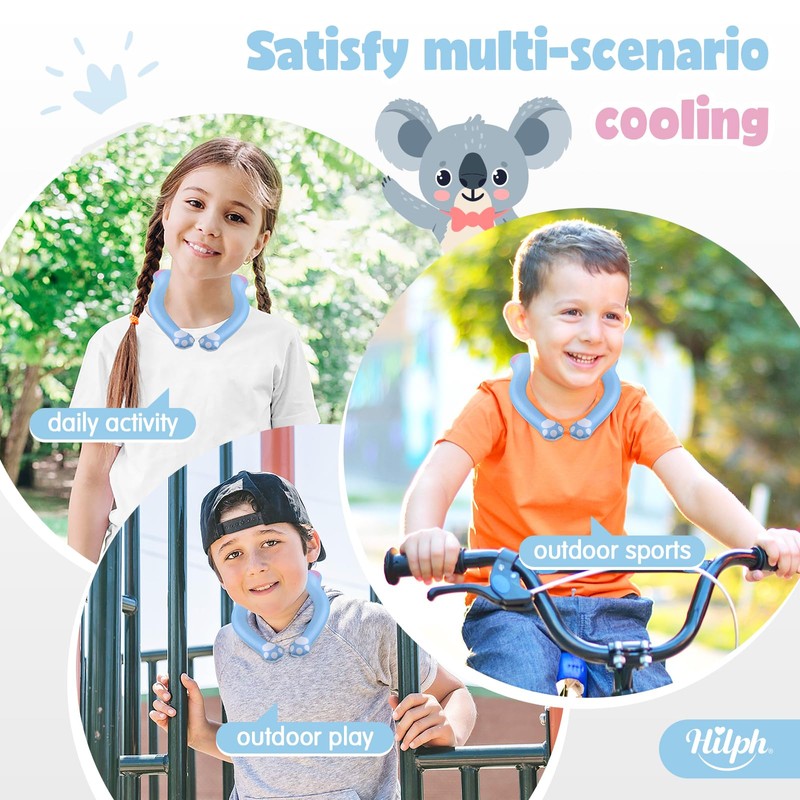 - Perfect Fit & Design for Kids - Hilph neck cooling tube for kids is specially designed with cute and colorful animal pattern for kids. Ergonomic shape that hugs little necks without slipping. Features 4 adorable animal designs (panda, frog, cat, koala) in soft colors—no more boring adult-sized coolers! Made with child-safe TPU that’s non-toxic, skin-friendly, and extra-durable for active play.