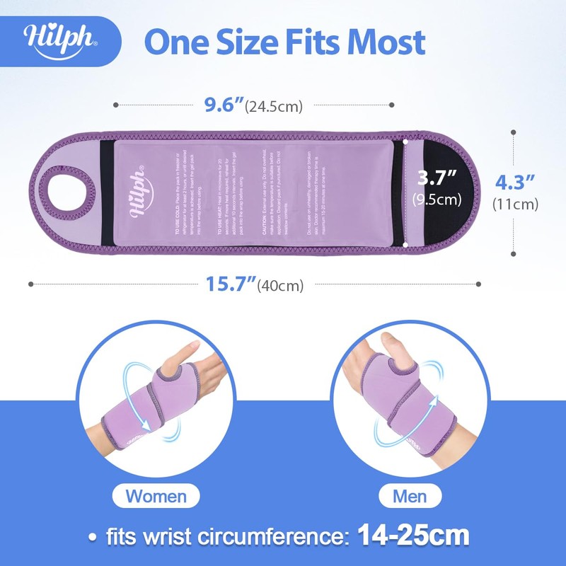 Hilph Wrist Ice Pack Wrap for Pain Relief, Reusable Wrist Brace with Gel Cold Pack for Injuries, Hot & Cold Compress Hand Ice Pack for Carpal Tunnel, Rheumatoid, Tendonitis, Swelling (Purple)