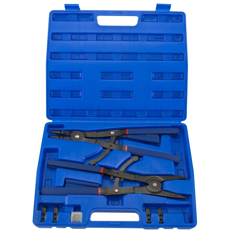 PLIER SNAP RING 16" 2 PC (BMC). 1 Internal. 1 External. Heat treated tip. Soft grip handle. Includes 4 quick-change snap ring tips: 2- 45 degree, 2- 90 degree