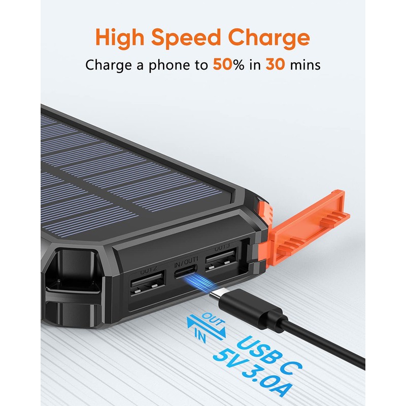 - 2,5-fache Aufladung: Mit einem USB-C-Ladegerät (nicht im Lieferumfang enthalten) können Sie Ihre Power Bank in 7 Stunden vollständig aufladen, was 2,5-mal schneller ist als ein 1A-Input. Der USB-C-Anschluss kann auch als Ausgang zum Aufladen Ihres Telefons dienen.