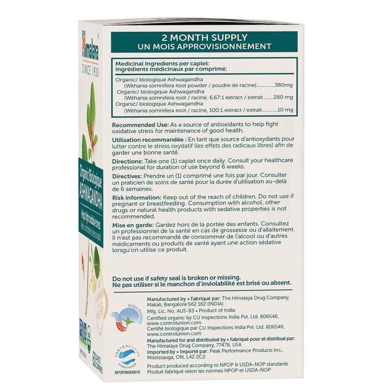 - CANADA NPN No. 80041941: Himalaya Organic Ashwagandha is a source of antioxidants to help fight oxidative stress for maintenance of good health.