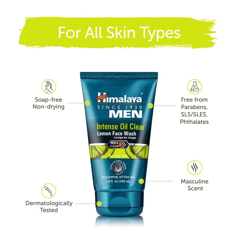 Himalaya Men's Intense Oil Clear Lemon Face Wash is a soap-free, herbal active formulation enriched with the goodness of finely blended Lemon, Indian Willow and Piperine to remove excess oil and deep seated impurities without over-drying you skin. It's great for combination to oily skin, and it works wonders in washing off excess oil and deep cleansing your pores.