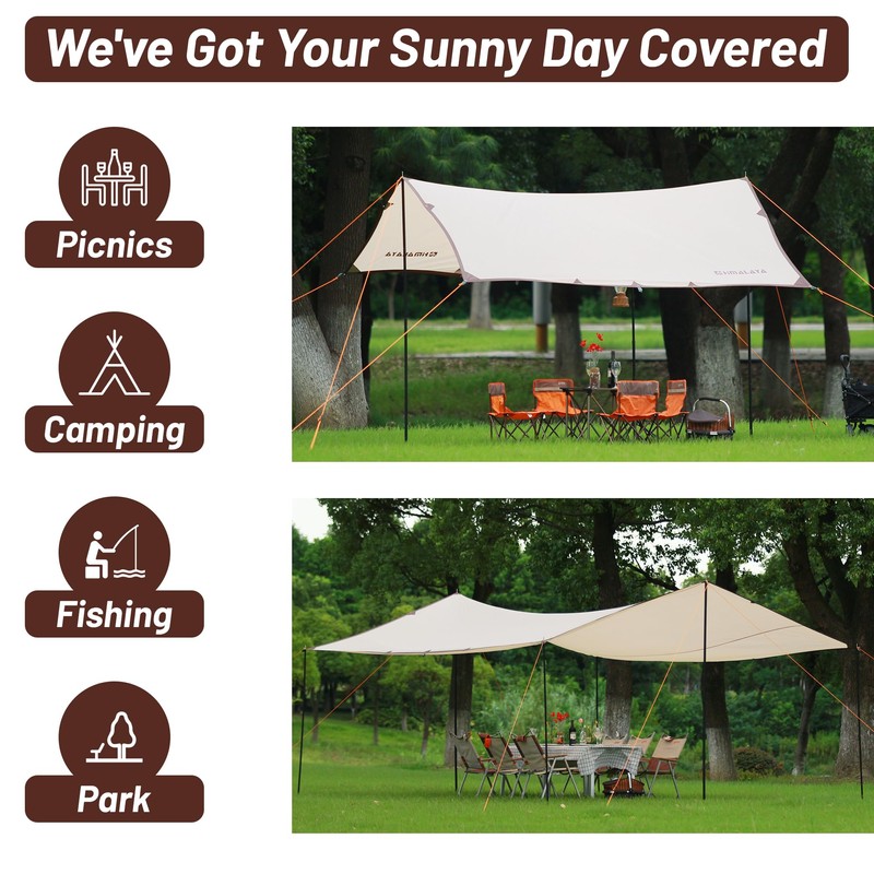 Himalaya Rain Tarp for Camping 4-6 Person Tent Tarp with 2 Poles Canopy Sun Shield Tarp UPF 50+ Outdoor Camping Traveling Awning Backpacking (157.4" x 141.7")