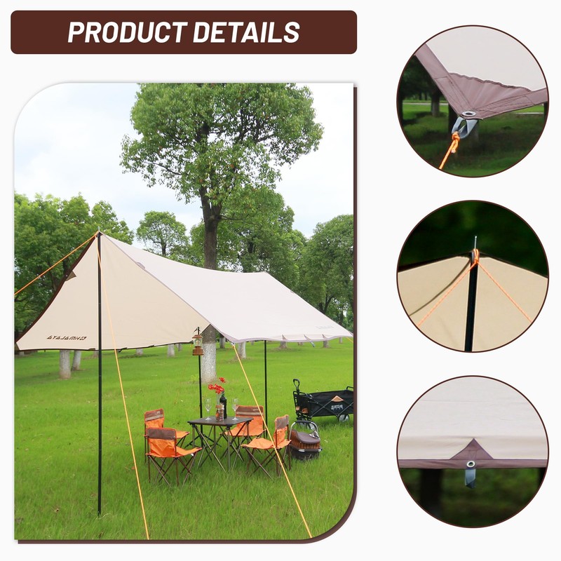 - 【Tarp Size】 The Rain Tarp size is 157.5 x 141.7 x 98.4in, weight is 16.9lbs/7.65kg.