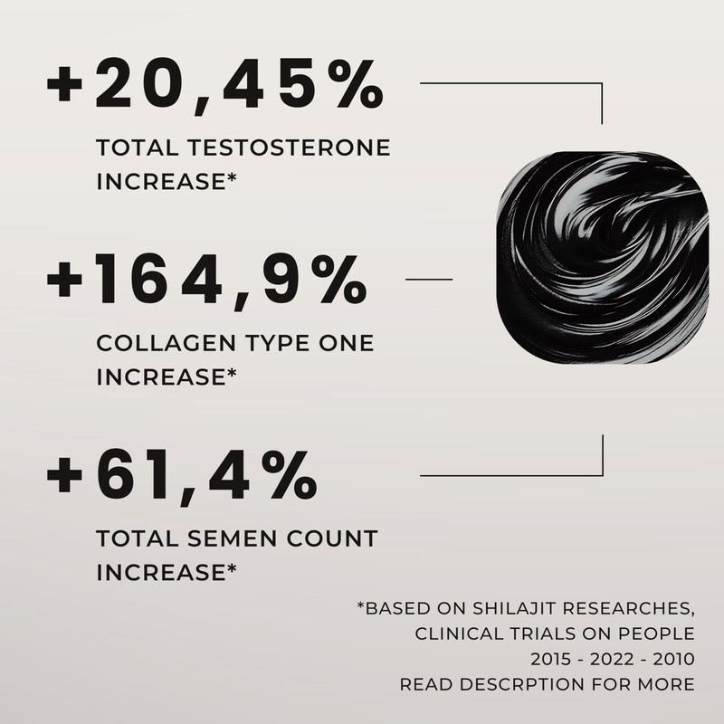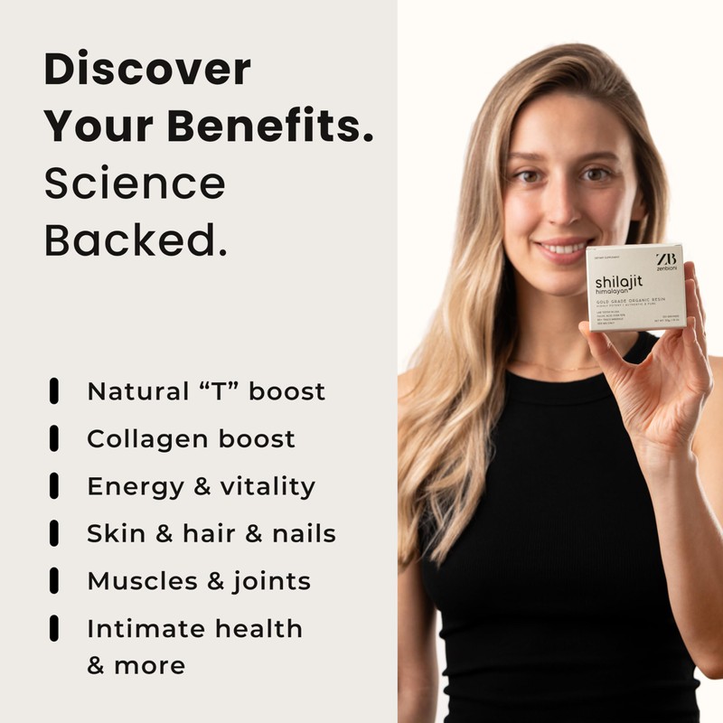 - Experience the clinically proven benefits of Shilajit. Studies show it can significantly boost testosterone levels by up to 20.45%, contributing to improved muscle growth, stamina, and overall performance. Additionally, it enhances collagen production by up to 164.9%, promoting healthy skin, hair, nails, joints, and ligaments. Embrace a natural path to enhanced energy, vitality, and well-being with Zenbioni Shilajit for men and women.