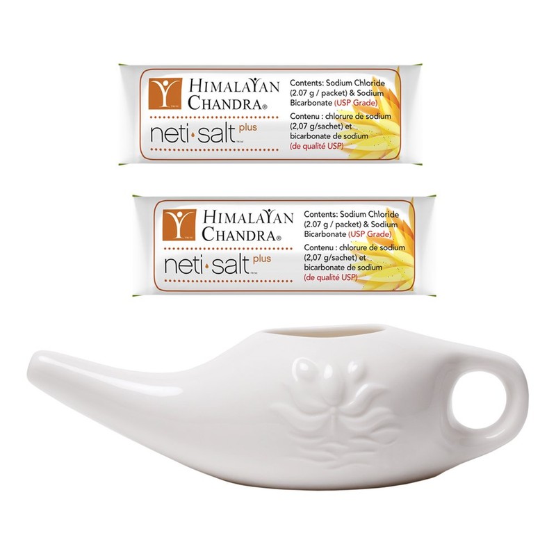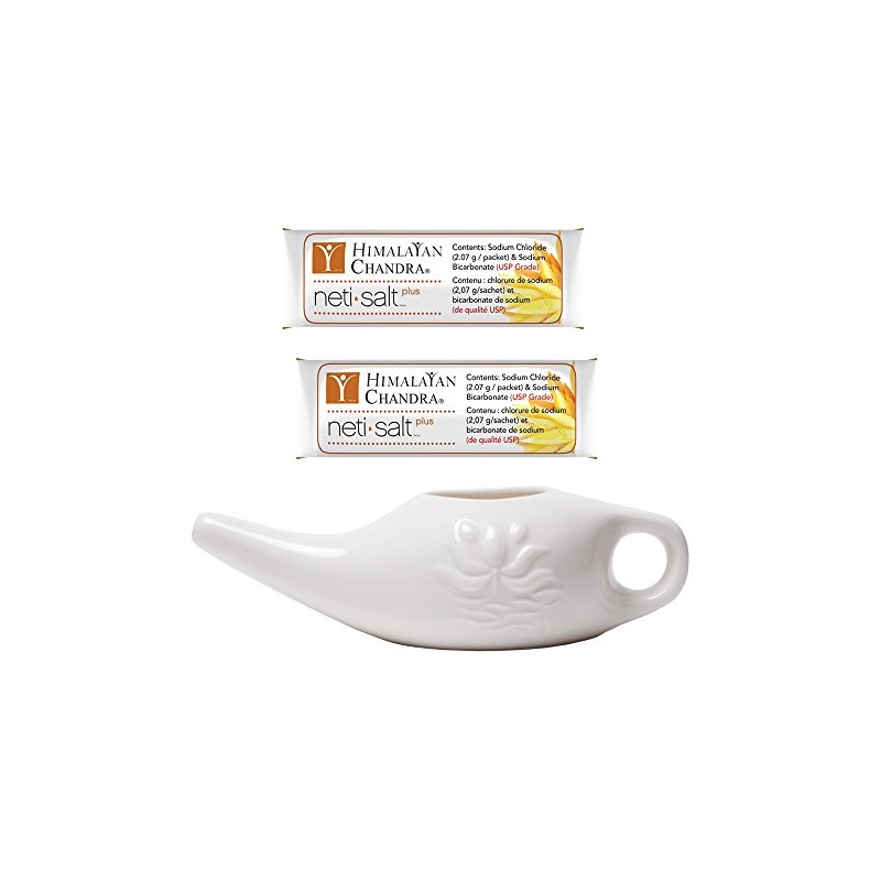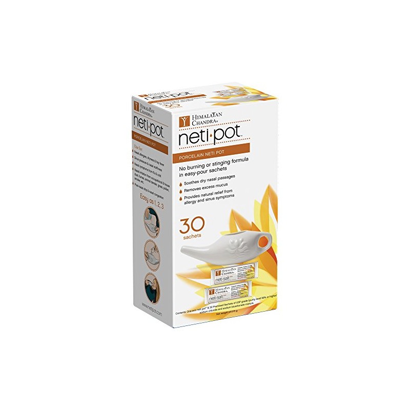 Himalayan Sinus Rinse Porcelain Neti Pot with 30 Sachets, 11 Ounce