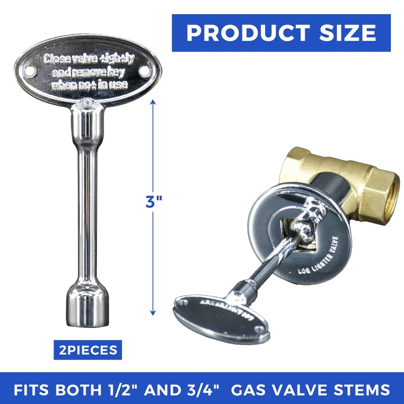 - 【3" Gas Fireplace Key】- the gas valve key shaft length is 3" ,designed for both 1/2-inch and 3/4-inch turn ball valve a universal size, so please measure yours before buying valve aperture.