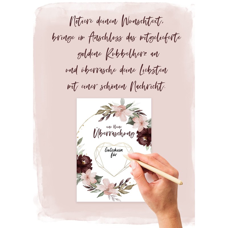 HIMMEL.HERZ.PAPIER® Make Your Own Scratch Cards Set of 10 Bordeaux – Scratch Cards to Write on Yourself – Scratch Card Ich liebe dich – Design Rubellose Yourself – For Labelling