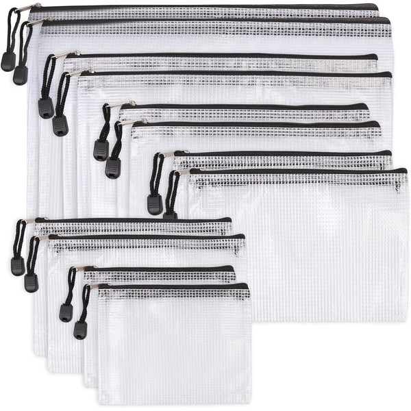 HIMOMO Zipper File, Set of 12, 6 Sizes, Zipper File Bags, Transparent, Clear, Waterproof, Mesh Case, Contact Bag, Document Organization Receipt File, Office Supplies, Travel Storage (A4,A5,A6,B4,B5,B6)
