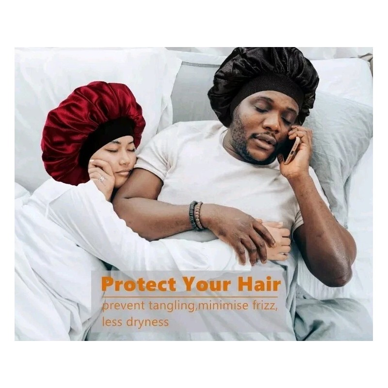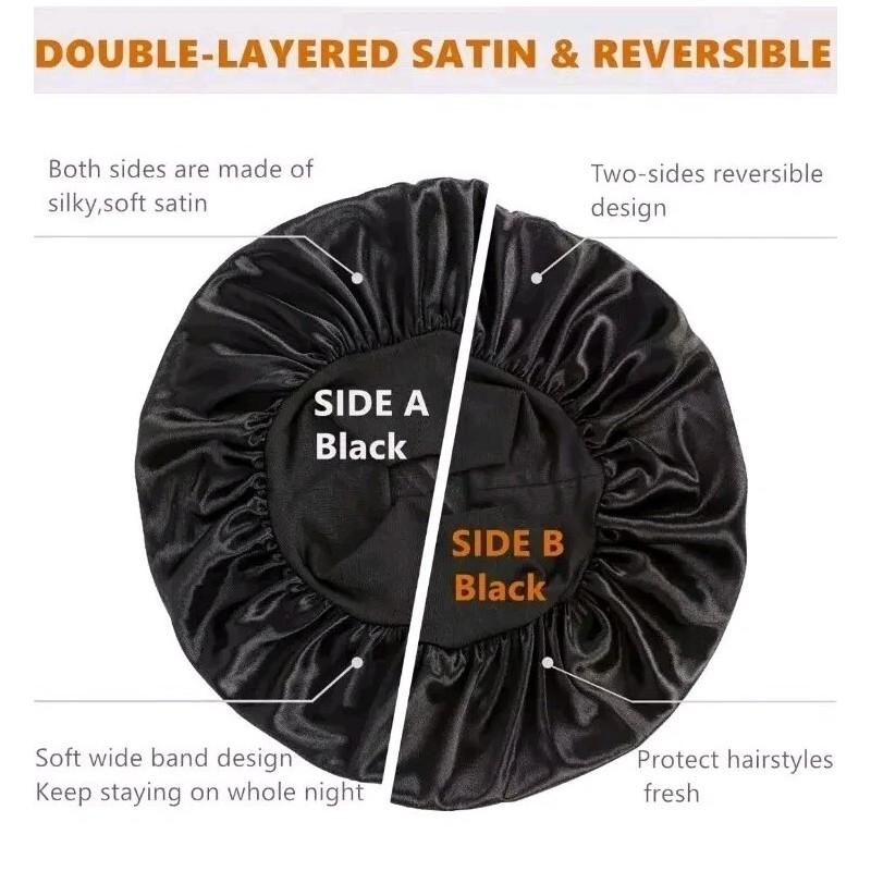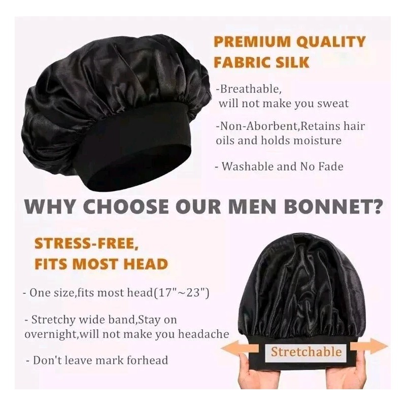Reversible Double-Layered Satin Bonnet for Men / Black Women Retains Hair Oils & Holds Moisture- Our sleeping cap for women to protect hair are made of breathable silky satin, washable & no fade.It helps prevent tangling,minimising frizz & less dryness.Double-layered design,you can wear our nightcap in 2 sides, you hair will thank you: