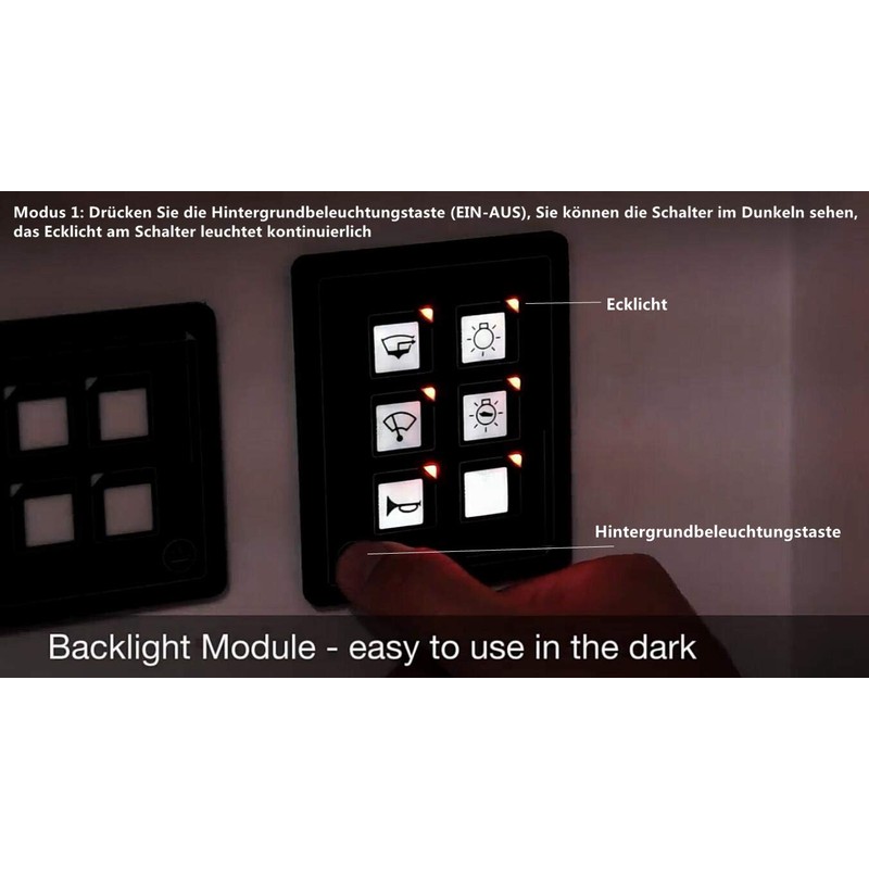 - The switch self-resetting fuse, which displays each branch of the LED/10A. Backlight module, easy to use in the dark, very low standby current