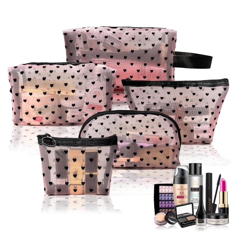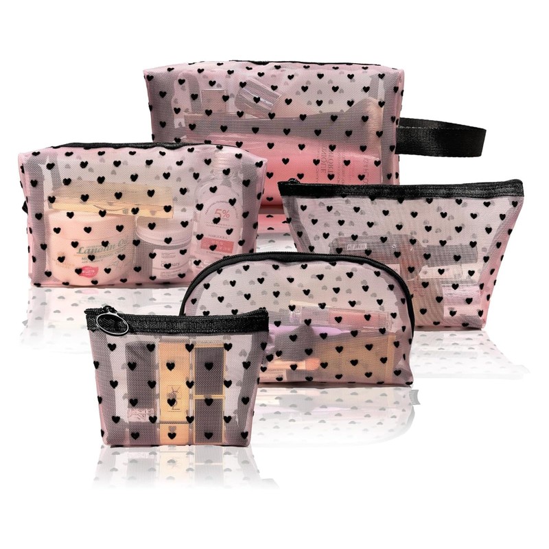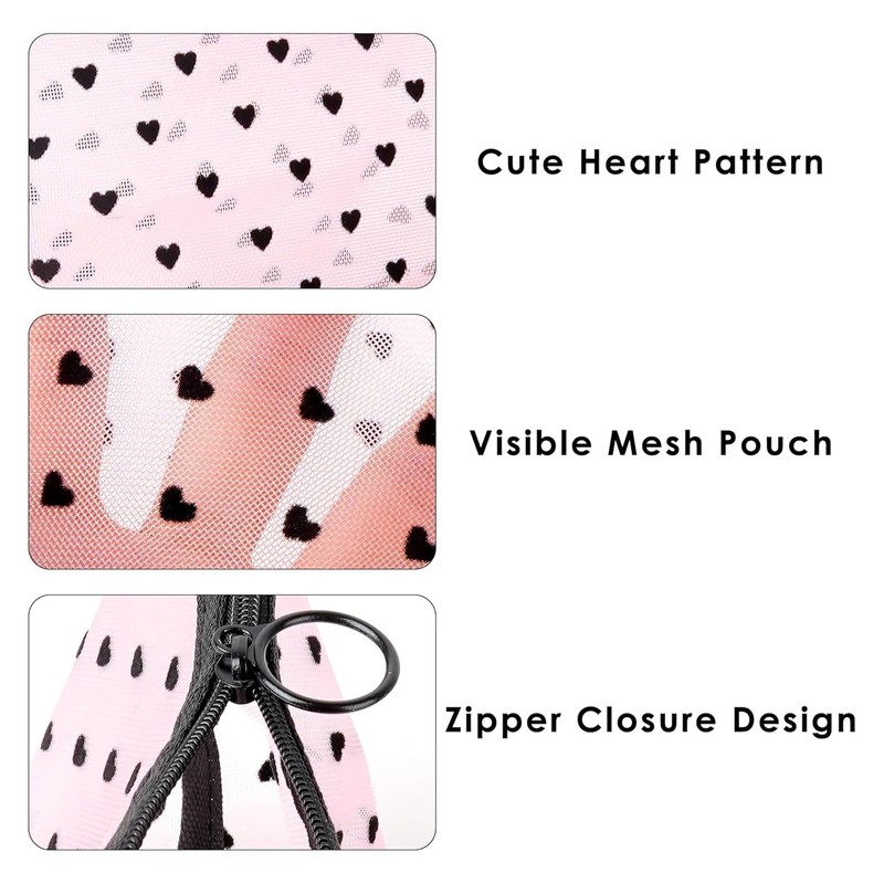 - Elegant design: the stylish mesh makeup bags are decorated with charming black heart patterns and available in various shapes such as rectangular, triangular and semi-circular, which combines functionality and aesthetics