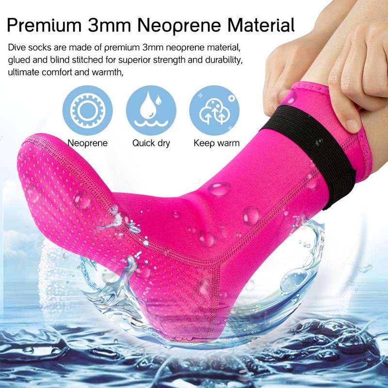 - 👏【High-quality Material】Our Neoprene Socks are made of 3mm high quality neoprene and nylon blend, providing excellent insulation and protection. These wetsuit socks are perfect for a variety of water activities, such as diving, swimming, and surfing. The waterproof design ensures your feet stay dry and warm.