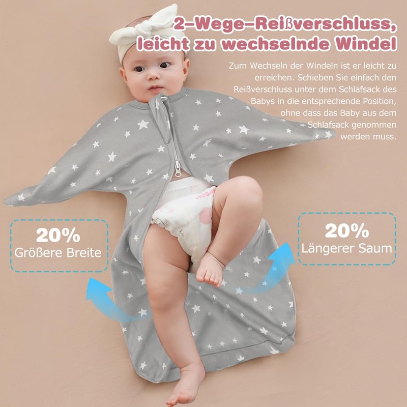- Soft and breathable: the baby swaddling bag is made of 100% combed cotton with high fineness, the extremely comfortable and soft fabric soothes the baby and ensures a comfortable sleep. Breathable and stretchy premium quality, less stuffy and comfortable for your baby. The swaddle has a zip protection on the top, to prevent the baby's chin from being rubbed and the sensitive skin is protected.