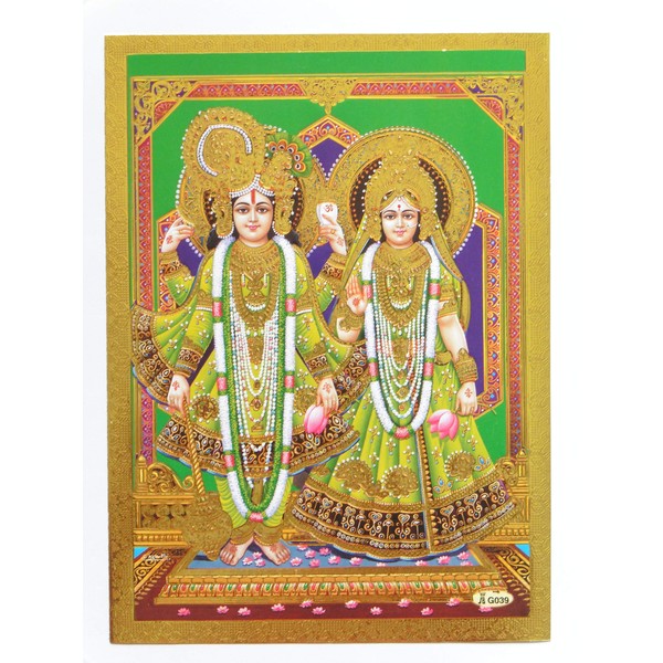 Hindu God Lord Radha Krishna Gold Foil Embossed Shrine Picture
