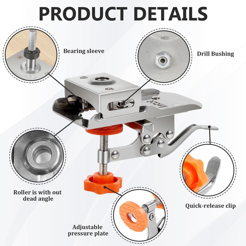 - Easy to use: the edge spacing can be easily adjusted by loosening the screw, and the built-in double clamp holds the workpiece quickly and securely, prevents slipping of the drilling position and ensures drilling accuracy and stability., reducing errors and maintaining drilling accuracy.