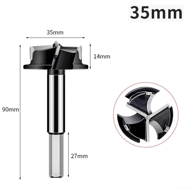 Drill bit: 90 x 35 x 27 x 14 mm.